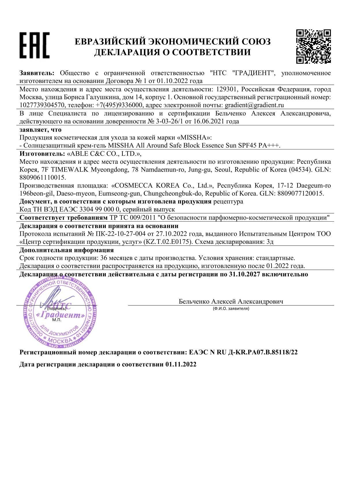 MISSHA — глобальный бренд красоты, который выходит за рамки K-beauty, которому доверяют и выбирают более 10 миллионов лояльных потребителей по всему миру. MISSHA предлагает только самые необходимые ингредиенты и skin-friendly формулы, повышающие проникновение компонентов в кожу для максимального эффекта.