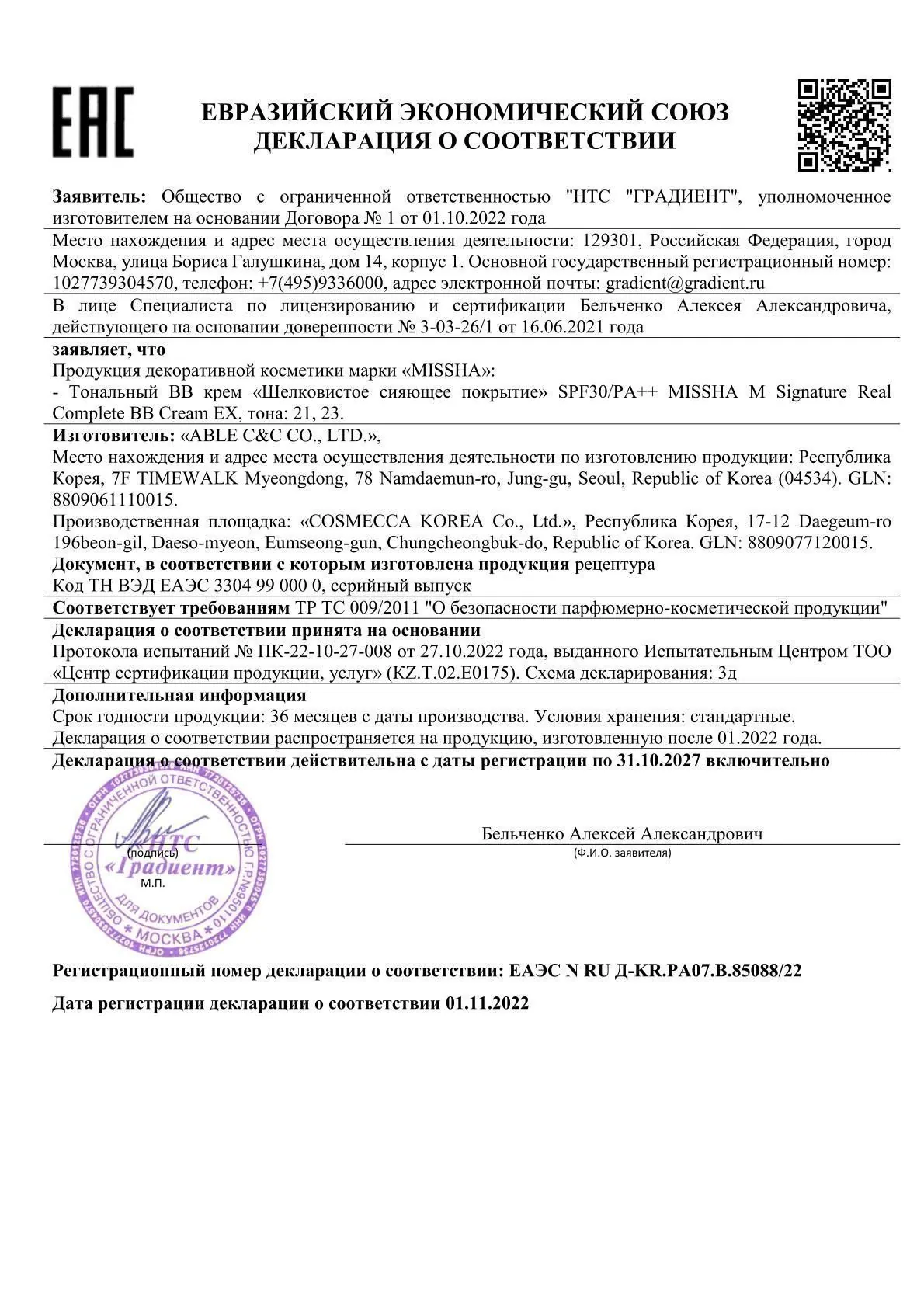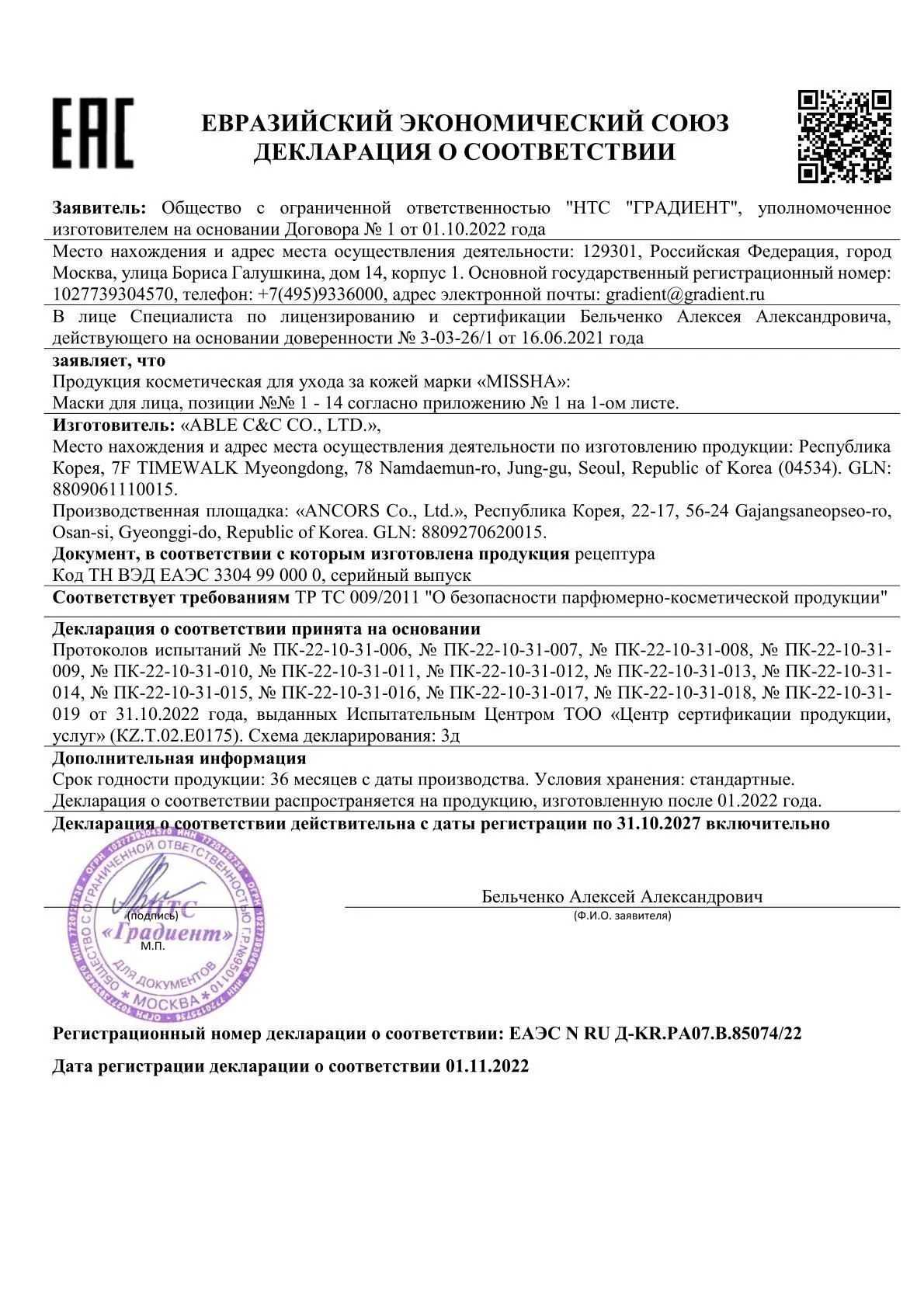 Вместе с использованием современных технологий, главными компонентами MISSHA остаются натуральные растительные экстракты, которые прошли самые строгие проверки на аллергические реакции. MISSHA постоянно совершенствует качество продукции и вкладывает средства для продолжения научных исследований.