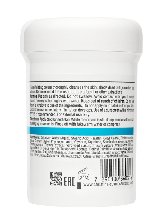 Deionized Water (Aqua); Stearic Acid; PARAFFIN; Cetyl Alcohol; Triethanolamine; Algae; PHENOXYETHANOL; Caprylyl Glycol; Glycerin; Squalane (Cosbiol); Saccharide Isomerate; Alcohol; Hydrolyzed elastin (Marine); Triticum Vulgare (Wheat) Germ Oil; Rosa Canina Fruit Oil (Rose Hip Oil); Caprylyl Glycol; Chlorphenesin; Tocopheryl Acetate; Retinyl Palmitate; Ascorbic Acid; Sea Salt (From Dead Sea); Chamomilla Recutita (Matricaria) Flower Extract; Vanilla Tahitensis Fruit Extract; Malva Sylvestris (Mallow) Extract; CITRUS GRANDIS(GRAPEFRUIT) FRUIT EXT.