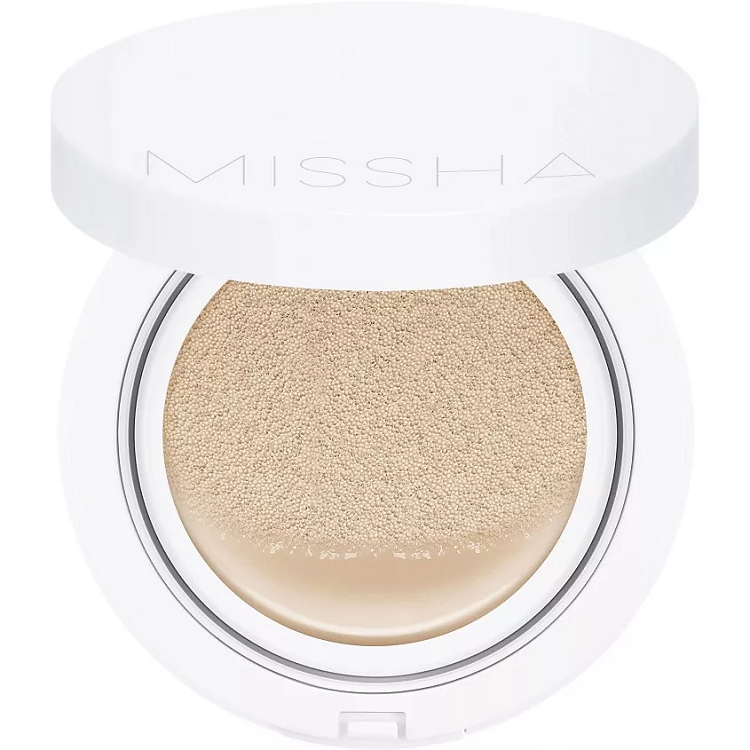 Тональный кушон MISSHA Magic Cushion Moist Up создаёт эффект увлажненного финиша с покрытием средней плотности.