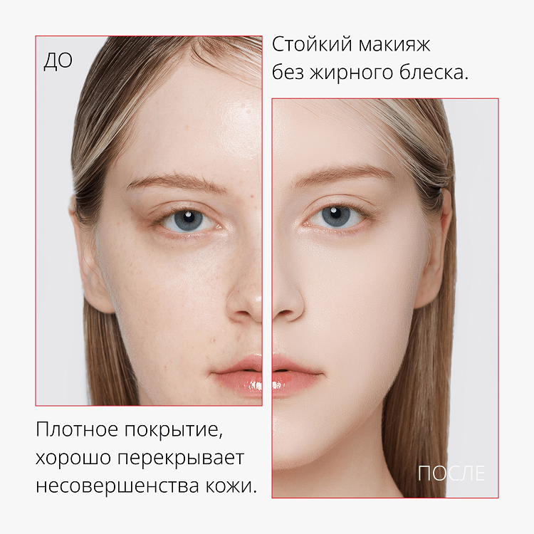 При необходимости нанесите второй слой на зоны с выраженной пигментацией либо следами акне для создания чистой, безупречной кожи.