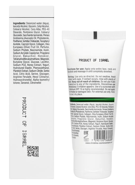 Антивозрастной комплекс с морским гидролизованным коллагеном и эластином, экстрактом меда улучшает способность удерживать влагу, оказывает моментальный лифтинг-эффект, повышает тонус и делает кожу гладкой. Бакучиол – натуральная альтернатива ретинолу – предотвращает появление морщин, осветляет пигментацию, повышает эластичность кожи. Планктонные водоросли действуют как энергетический бустер для клеток. Витамин B3 и куркумин уменьшают выраженность пигментных пятен и восстанавливает ровный тон кожи.