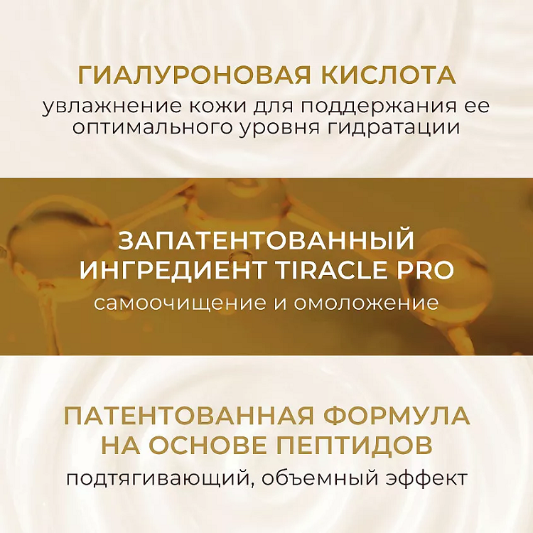 Tiracle Pro — запатентованный ингредиент, стимулирует процессы самоочищения и обновления клеток, доставляет влагу в обезвоженные слои кожи.